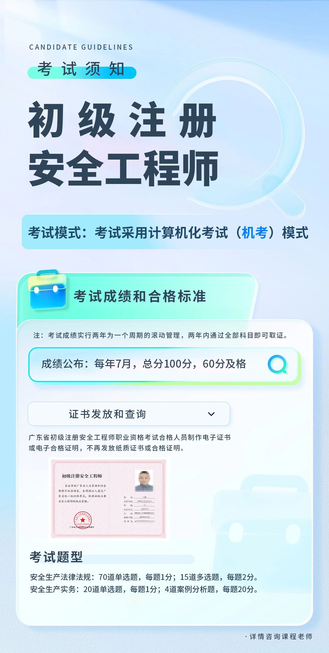 •每年7-8月出证,广东省初级注册安全工程师职业资格考试合格人员制作电子证书或电子合格证明,不再发放纸质证书或合格证明。